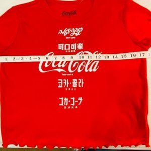 Cute Coca-Cola cropped Tee with ruffle trim on sleeves and hem. New, never worn. Great T-shirt for your Coke fan!