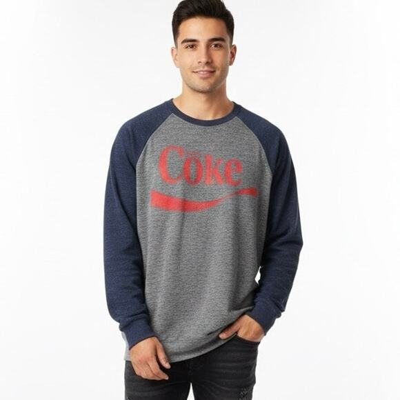 Coca-Cola Enjoy Coke Raglan Graphic T-Shirt Mens XL Gray Blue Long Sleeve Retro