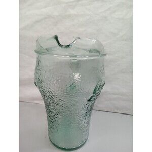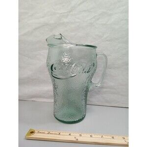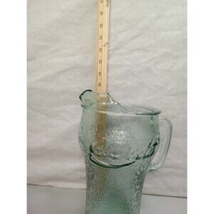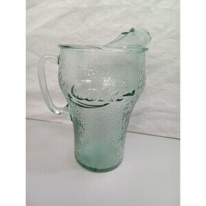 Coca-Cola Green Pebbled Glass Pitcher is a vintage collectible advertising item from the United States. This 64 oz pitcher features a unique design with a green color and pebbled glass texture, making it a standout piece for any Coca-Cola or soda memorabilia collector. The pitcher also includes an ice lip and handle, adding to its functionality and appeal for those who enjoy vintage soda-themed decor. With its original design and iconic Coca-Cola branding, this pitcher is a must-have for enthusiasts of classic advertising and soda history.