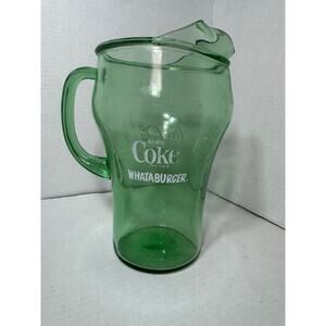Description: glass pitcher with Coca Cola on one side and Whataburger printed on the other.