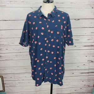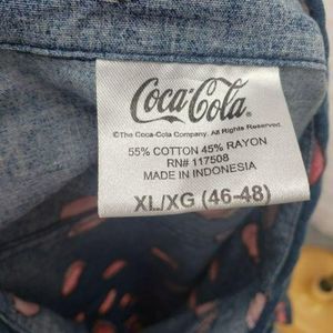 Coca Cola Men’s Blue Bottle Cap Button Down Shirt Size XL