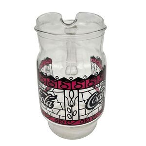 This Coca-Cola pitcher is a vintage collectible with a retro stained-glass design. Measuring 9 inches and with a capacity of 72 oz, it's perfect for serving your favorite beverage. The red, black, and clear colors give it a classic look that will add to any collection. The pitcher features the iconic Coca-Cola logo and is an original piece from the 70s. It's a great addition to any collection or a memorable gift for a Coca-Cola enthusiast.