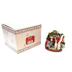 The product is a vintage 1998 Coca-Cola figurine from the Polar Bear Cubs Collection, featuring the iconic Coca-Cola branding with a multi-color design. This original collectible item captures the theme of soda and was manufactured in China. The figurine is a part of the Coca-Cola advertising campaign, making it a desirable piece for collectors of Coca-Cola memorabilia.