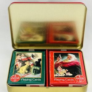 Coca-Cola Santa 1996 Nostalgia Playing Cards 2 Decks Collectible Tin Christmas