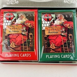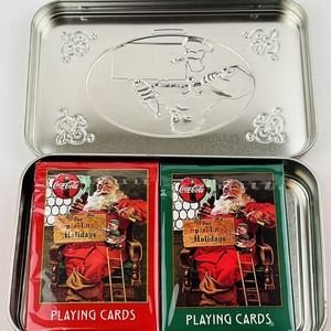 Coca-Cola Santa 1998 Nostalgia Playing Cards 2 Decks Collectible Tin Christmas