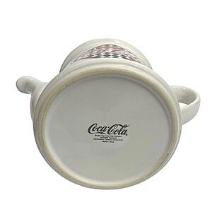 This vintage Coca-Cola teapot is a must-have for any collector of soda memorabilia. The teapot, produced by Gibson in 1995, features the iconic Coca-Cola logo in red and white ceramic. Made in China, it is a great addition to any kitchen display or Coca-Cola advertising collection.