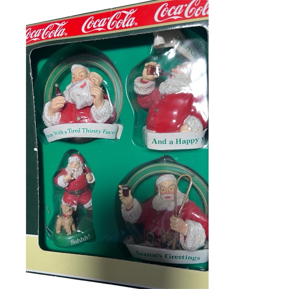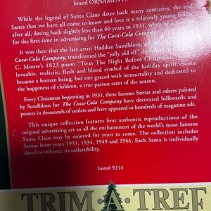 Coca-Cola themed box with festive red and green colors. Features Santa Claus imagery and holiday text. Ideal for collectors.