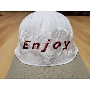 Coca-Cola White Beige Embroidered Coke Logo Hat Cap Baseball Red Adjustable USA