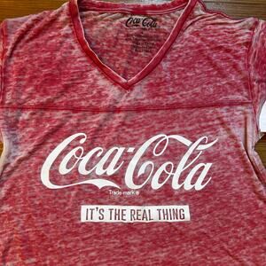 Coca-Cola red white distressed sheer short sleeve tee shirt SIZE L
