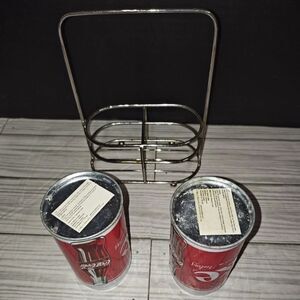 Coca-Cola Soda Can Salt and Pepper Shaker Set With Caddy Retro Decor