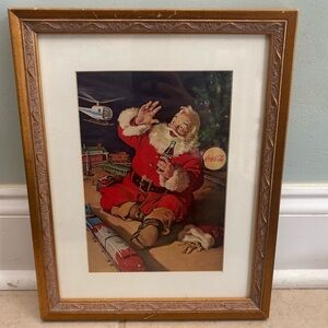 Two Items Coca Cola LOT - Framed print of famous Coca Cola Polar Bear with certificate of authenticity, frame is dark blue wood. 1996.