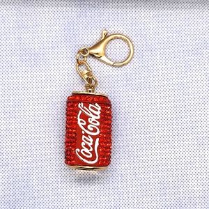 Red Coca-Cola rhinestone keychain with swivel and clasp.