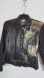 Cocco ⏰ Denim $ Faux Leather Jacket With Black and Gold Art Design Sz L