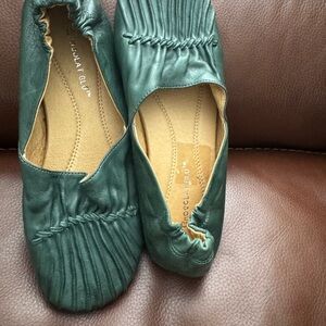 Experience the perfect blend of comfort and style with Coccoli's green flats. These shoes feature a soft, smooth finish with a distinctive ruched detail across the top, adding a touch of elegance to your everyday look. Ideal for casual outings, they promise both style and comfort.