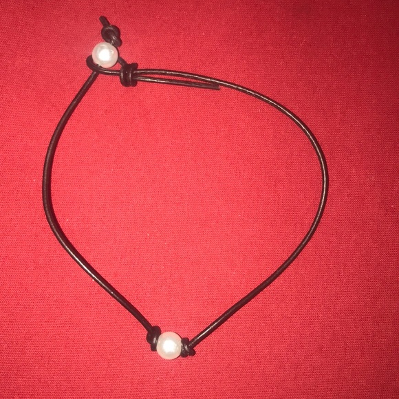 Lether pearl necklace (I made this handmade if u need a different length I can attempt to make another with that size)
