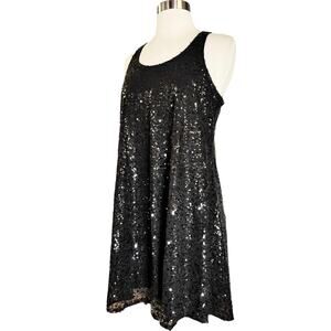 Cocktail Black Sequins Dress Swing Sleeveless Racerback by UNIX LBD Small NWT