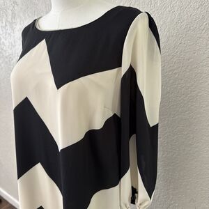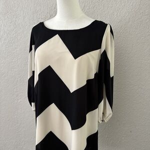 Cocktail Chevron Dress Women’s Size L Black Cream 3/4 Sleeve Bow Back Formal