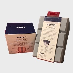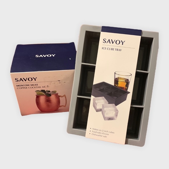 Savoy - Moscow Mule, Copper Cocktail Mug (16oz, stainless steel and copper plated, zinc alloy handle) & Savoy - Ice Cube Tray (makes 6 - 2inch cubes, food safe silicone, dishwasher safe). Both new!!