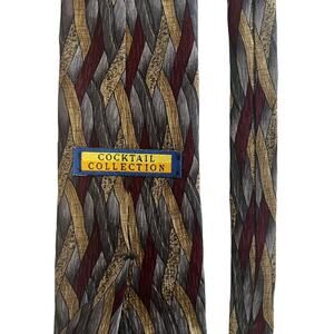 Cocktail Collection by Stonehenge Brandy As Seen Under the Microscope Burgundy Gray Tan Woven Pattern Tie