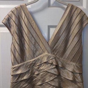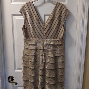 Jewel tone cream cocktail dress. Beautiful pleated top and tiered skirt. Perfect for a wedding or special party