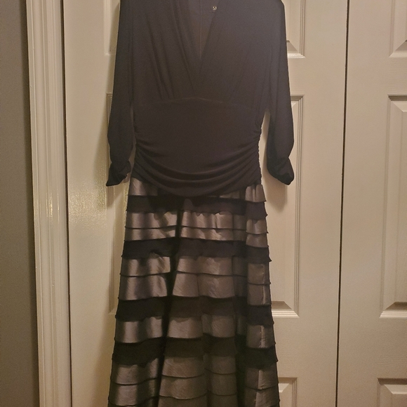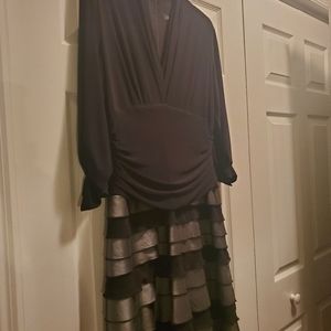 Knit top with ruching at waist and on sleeves. Taffeta skirt. Worn once.