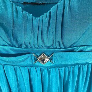 3/$18 Blue cocktail dress. The size is small. No tag so unsure of the brand. It measures pit to pit 15 inches, length is 30 inches. Good condition.