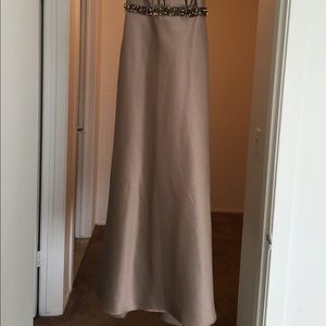 Champagne, beaded, mid-calf length cocktail dress for party or wedding. Size 12 fits like an 8