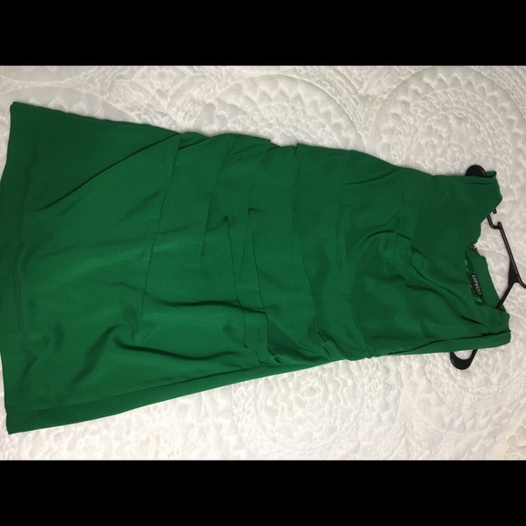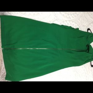 Gorgeous and sexy cocktail dress. Ruched front is very flattering. Zipper on back goes the length of the dress. Hits at the knee.