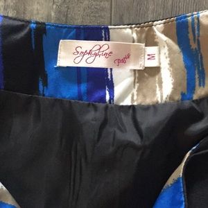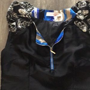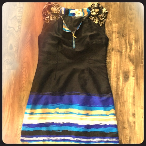 Beautiful royal blue and black cocktail dress! Very light weight and perfect for any summer evening event! The colors are vibrant and photos just font do it justice...I bought this dress in a boutique in Ireland, so it is very unique...