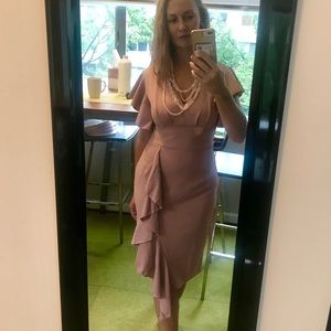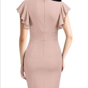 New Short Sleeve elegant stretchy blush pink dress. Perfect for Bowknot Church, Wear to Work, Cocktail party and etc. The fabric is purity thick.