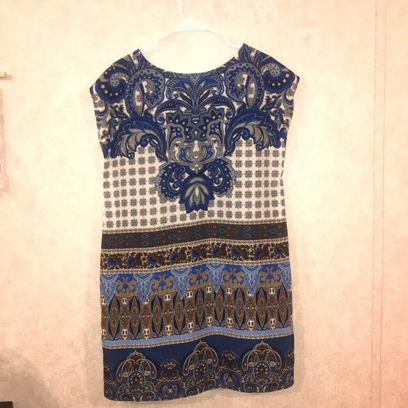 Blue, white, and gold dress. Great for formal dinners, weddings, and other events!