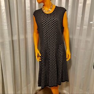 Black sweater cocktail dress with metalic gold accents