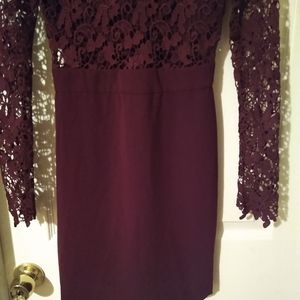 Lace and fabric pretty Burgundy color cocktail dress. Only wore a couple of times but has plenty of life left in her.