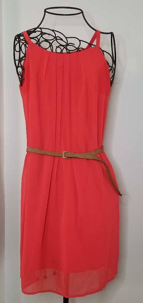 Red orange cocktail dress with belt loops. Belt not included (only for display). Great dress to customize with you own taste.