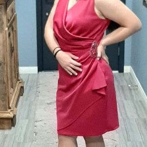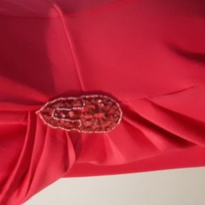 Gorgeous cocktail dress, fushia, side embellishment, slip on. Great dress thar hides tummy imperfections. has a lot of stretch.