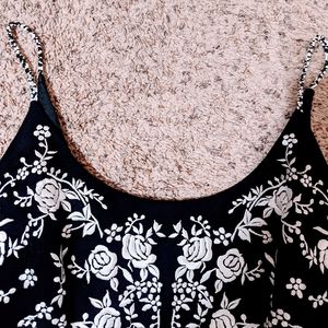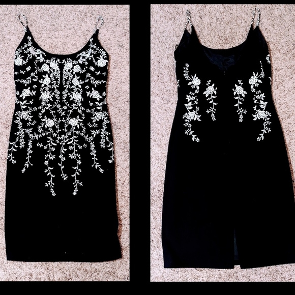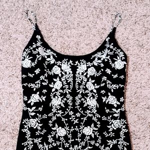 Beautiful little black dress with white embroidery. Like new! 🖤