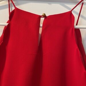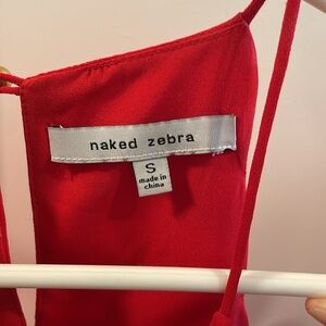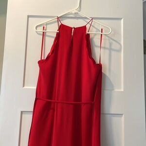 Length hits mid- thigh depending on height. Key hole loop in the back. A few small snags on the dress from normal wear. Includes tie around waist.