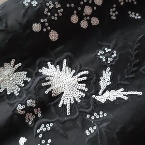 Black Cocktail Dress with white beading beautiful design. Black lining and netted dress over the lining.