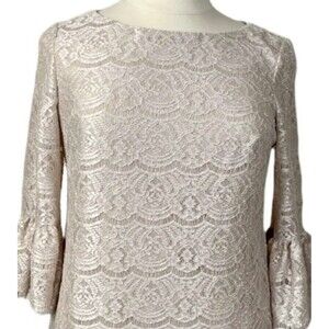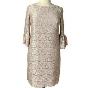 Cocktail Dress Lace Sheath Dress Jessica Howard Bell Sleeves Lt Beige Sz 8