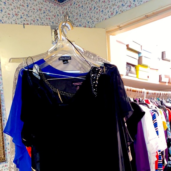 Black dress, one embellished shoulder