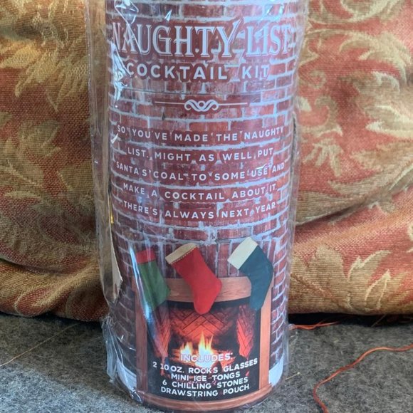 Holiday Cocktail Kit: 2 Glasses, Mini Ice Tongs, 6 Chilling Stones, and Draw String Pouch