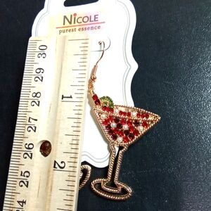 These earrings are designed to resemble a cocktail glass and are adorned with sparkling rhinestones, capturing the fun and festive spirit of happy hour, They are playful and eye-catching, making a bold statement, perfect for a night out or a special occasion. Please look at the photos for measurements. And message me if you have any questions