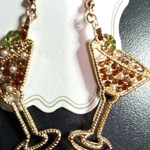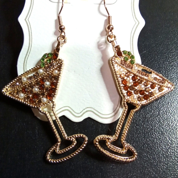 These earrings are designed to resemble a cocktail glass and are adorned with sparkling rhinestones, capturing the fun and festive spirit of happy hour, They are playful and eye-catching, making a bold statement, perfect for a night out or a special occasion. Please look at the photos for measurements. And message me if you have any questions