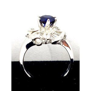 Cocktail Ring 14k white gold, Blue Cubic Zirconia Size 7.5