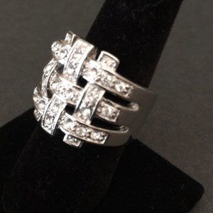 Vibrant Cocktail Ring, silver color with sparkling stones.