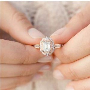 Rose Gold Emerald Cut White Sapphire RING CZ | NWT SZ 10