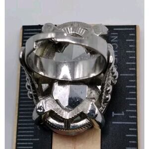Cocktail Ring Ruby Red Glass Cabochon Statement Silvertone Ajustable Faceted