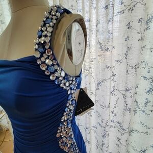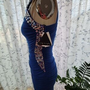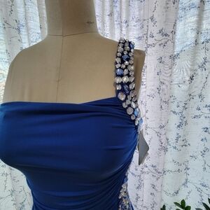 City Triangles Cocktail Royal Blue One shoulder Dress with Rhinestones Size S