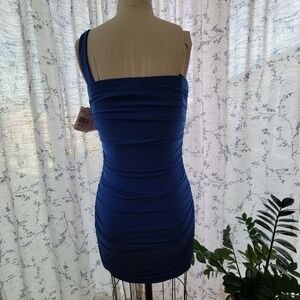 Cocktail Royal Blue Dress One shoulder with Rhinestones - City Triangle Size S
