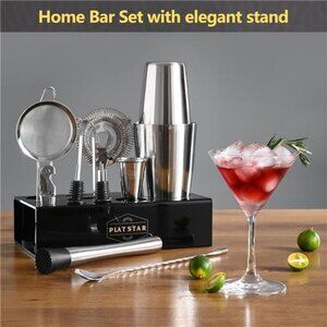 Cocktail Shaker Bartender Kit Bar Tools Set with Stand for Home Drink Mixing
